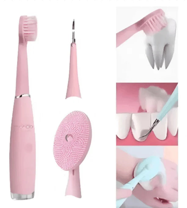 El cepillo dental y removedor de sarro permite una higiene más detallada, apta para dientes sensibles, ayudando a reducir sarro y bacterias causantes del mal aliento sin causar molestias.